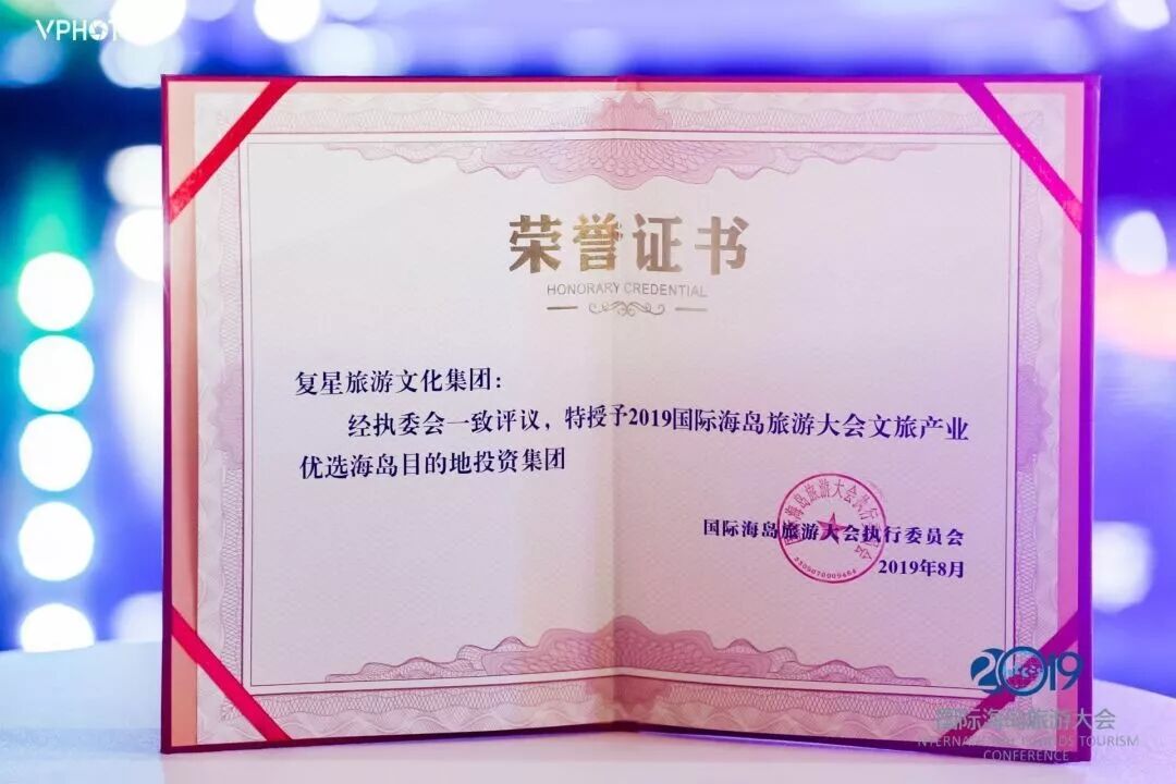 复星旅文获评2019国际海岛旅游大会文旅产业