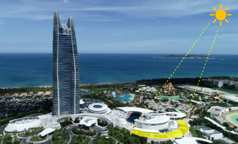 可再生能源利用:三亚纬度靠近赤道,太阳能资源丰富,在屋顶设置850㎡太阳能集热板对生活热水进行预热,辅助热水锅炉提供生活热水。