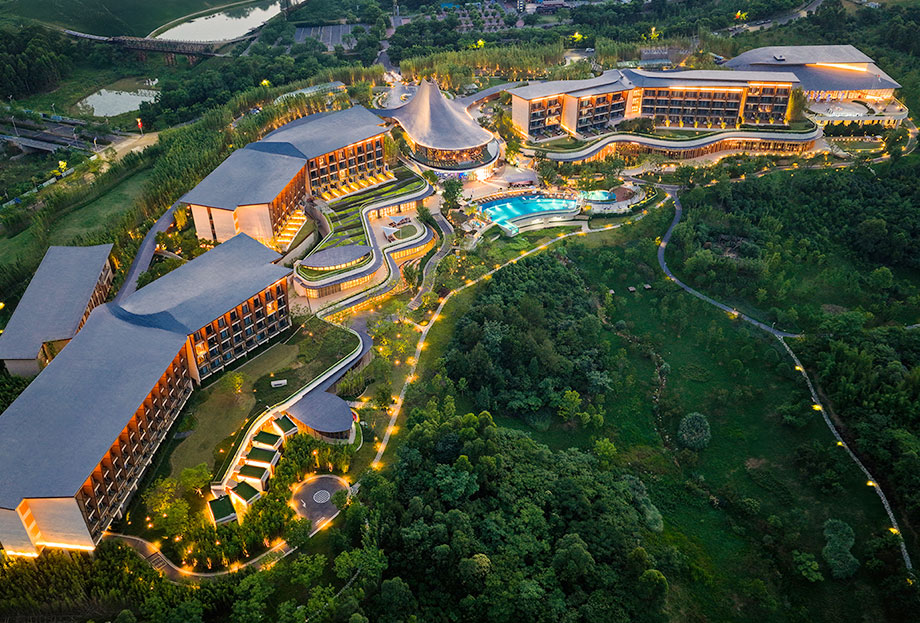 Club Med Joyview地中海邻境·黑龙滩度假村坐落于成都素有「川西第一湖」美名的黑龙滩西岸——中铁黑龙滩国际旅游度假区内,是地中海·邻境首家进驻西南地区的度假村,度假村依山而上,怀抱茶花谷,度假区内其他项目如群星环绕四周,与龙泉山脉隔水相望。